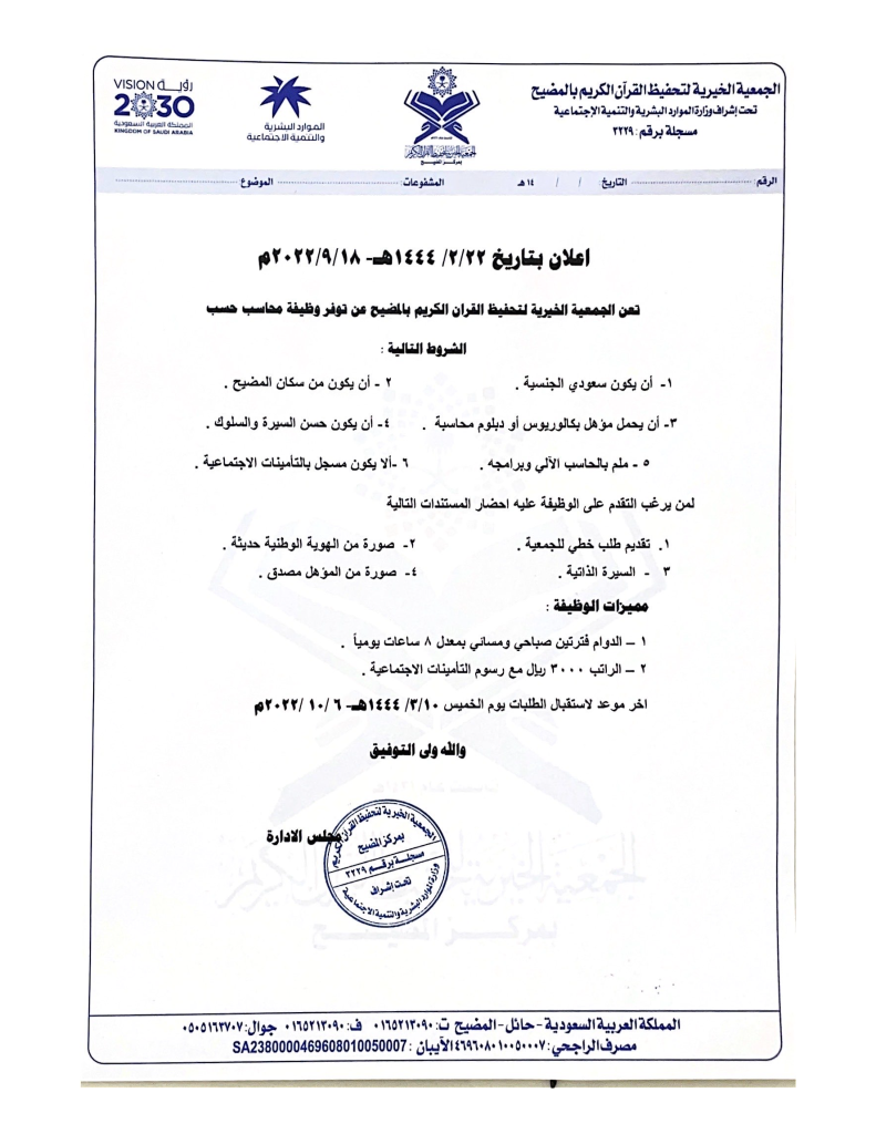 نرجوا متابعة البوابة للتقديم على الوظائف الشاغرة في حال توفرها ، وكذلك على وسائل التواصل الاجتماعي